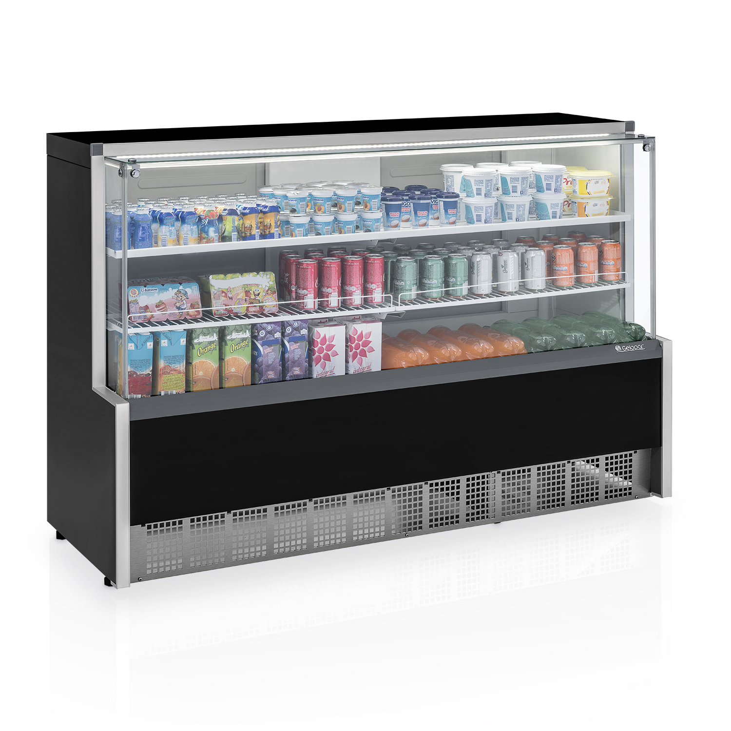 A vitrine refrigerada traz para o seu estabelecimento, um design moderno e atraente. A Vitrine Refrigerada GPDA-205C BR deixará seus produtos muito mais atraentes para seus clientes. Podendo ser usada para exposição de bebidas, frios e laticínios.